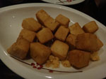 | こちら、豆腐を揚げてなにやら粉のようなものをかけたもの。不思議な味です。 |