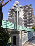 その古石場川親水公園をまたぐのが、この古石場橋。欄干がちょっと凝ってます。この辺りの橋って、みんなどこか凝ってますよね。