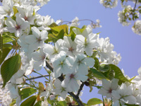 | 階段を降りて、山谷堀の跡でもある「山谷堀公園」へと向かいました。ここの桜並木が、とってもきれいです。どこまでも続く桜のトンネル。そして何よりも、人がほどんどいないというのがいいですね。遅めの時間でも、しっかりと場所取りもできるのではないでしょうか。浅草の花見では、穴場的場所でしょう。 ちなみにここの桜、ソメイヨシノだけでなく、オオシマザクラなんかもあったりします。うっすらとした一面ピンクもいいけど、白と緑のコントラストもいいですね。 |