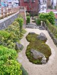 駅は市街地よりちょっと高台に位置していて、駅前広場の前の道路からは、街が見渡せます。そしてそのすぐ下を見ると…ここもまた気づきにくい場所に、小京都風ポケットパークがありました。 |